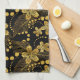 Linge De Cuisine Feuilles tropicaux noirs et or et fleurs motif