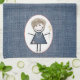 Linge De Cuisine Figure de bâton fille avec marguerites sur Denim