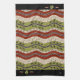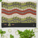 Cette serviette de cuisine monogrammée présente des rubans doucement ondulants de couleur (rouge brique, vert feuillu et crème) surmontés d'un joyeux motif de tourbillons noirs, de feuilles et de jante. (Correspondance de plats + plus chez HoMeArts!) Commandez 1 de chaque serviette de coordination pour un beau cadeau d'hôtesse de 3 et vous aurez droit à une réduction de volume!