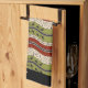 Linge De Cuisine Fils et vagues en rouge, vert + crème (Monogramme)