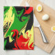 Rouges, Jaunes, Noirs et Verts Des tourbillons d'inspiration afrocentrique rouge, jaune, noir et vert dessiné serviette de cuisine. Par https://www.zazzle.com/store/celestesheffey