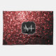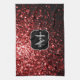 Personnalisez la serviette de cuisine à thé à la main fausse brillante avec votre initiale et votre nom. De belles parties scintillant rouges brillantes brillent. Photo Red sparkles pas de parties scintillant réelle!