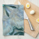 Linge De Cuisine Fleur Abstraite Fractée Turquoise Blanc Bleu Gris