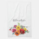 Personnalisez cette belle serviette de cuisine aquarelle avec votre nom ou tout autre texte. Les couleurs des fleurs sont le violet, le rose, le rouge, le jaune et l'orange.