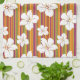 Linge De Cuisine Fleurs blanches sur un arrière - plan rayé
