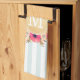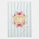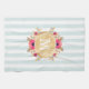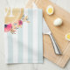 Serviette de cuisine avec motif rayé à la menthe, fleurs rose aquarelle et faux feuille d'or monogramme personnalisé.