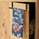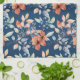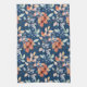 Cette serviette de cuisine décorative présente un motif floral élégant surplombant un arrière - plan bleu marine. De belles fleurs couleur cuivre, des baies bleues et du feuillage sont imprimés dans un style aquarelle.