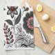 Linge De Cuisine Fleurs de gribouillis et feuilles en rouge et noir