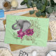 Profil latéral d'un éléphant avec le tronc vers le haut. Fleurs de lotus Fuchsia et henné dans un décor vert
