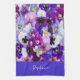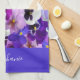 Un torchon de cuisine floral à fleurs de pensée violet bleu blanc monogrammé.