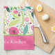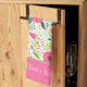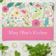 Cette serviette de cuisine amusante présente un joli motif de fleurs printanières dans des nuances de rose, vert, sarcelle et jaune. Personnalisez avec votre texte spécial de choix.