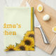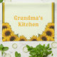 Ajoutez du fromage de tournesol à votre cuisine avec cette serviette personnalisée. Le motif de tournesol à chaque extrémité est relié par un cadre de couleur contrasté. L'exemple de personnalisation a le libellé de la cuisine de grand-mère et est contre un arrière - plan jaune clair. Tout cela, le libellé, la couleur arrière - plan, le type de police, la taille et la couleur peuvent être changés pour convenir.