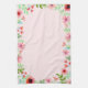Serviette de cuisine rose avec bordure de fleurs d'été. Aussi avec arrière - plan blanc ou bleu.