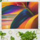Belle serviette de cuisine aux fleurs tropicales audacieuses et lumineuses et au coucher du soleil sur la plage | L'IA a créé un art numérique d'imaginaire surréaliste.