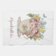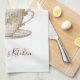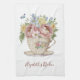 De jolies fleurs florales rose jaune et bleu dans une serviette de cuisine en tasse à thé. Personnalisez-la avec votre nom ou tout autre texte.