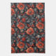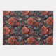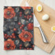 Linge De Cuisine Fleurs rouges en noir