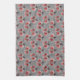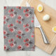Linge De Cuisine Fleurs rouges sur gris