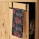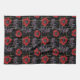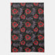 Linge De Cuisine Fleurs rouges sur le noir.