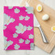 Linge De Cuisine Fleurs sur fond rose vif