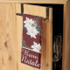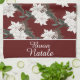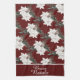 Cette serviette de cuisine à thème de vacances présente un thème de Noël italien avec des fleurs d'aquarelle sur un arrière - plan rouge foncé bordeaux. L'expression Buon Natale, qui se traduit par "Joyeux Noël" en Italie, est imprimée dans une police de texte élégante sur la partie inférieure. Un bouquet floral d'hiver de poinsettias blanches, branches de pins, cône de pin et feuillage d'hiver est carrelé au-dessus de l'accueil natale du bouillon.