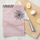 Belle serviette de cuisine moderne aux accents d'or rose. Et votre nom pour personnaliser !
