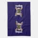 A fun personalized kitchen towel for French Bulldog pet owners and dog lovers. With an adorable French Bulldog puppy peeking up out of a pouch to greet us, and a personalized text box where you can type in your own dog's name, or any other text. A unique French Bulldog gift idea for any Frenchie Mom, dad, dog trainer, veterinarian, or dog lover.