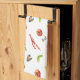 La serviette de cuisine de fruits de mer frais présente des illustrations aquarellées de délicieux fruits de mer frais et des herbes, y compris le homard, le calmar, le citron, le basilic, les tomates.