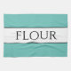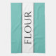 Ce design amusant de table de cuisine colorée présente du texte de FLOUR à l'intérieur d'une large bande blanche centrale surlignée de rayures noires contre des rayures extérieures d'aqua turquoises lumineuses. Le texte peut être personnalisé.