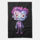 Serviette de cuisine avec une jolie illustration. Monstre Frankenstein aux cheveux roses et violets et costume et cravate en dapper.