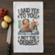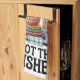 This funny kitchen towel is a simple way to refresh your kitchen decor with humor and charm.