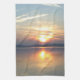 Die untergehende Sonne, die sich im Voir spiegelt, die das Wasser und die Wolken am hellblauen Himmel orange färbt, ist das Design dieses American MoJo Geschirrtuchs.