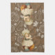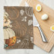 Halloween Kitchen Towel with a little girl in old-fashioned dress, carving an apple and throwing the peal over her shoulder. This was a game played by children. The apple peal was to fall indicating the initials or name of their future betrothed.