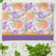 Serviette De Cuisine Colorée Moellée De Fleurs Oranges Et Violettes