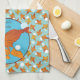 Cette serviette de cuisine graphique avec poisson rouge orange avec aqua pâle et bulles blanches est facilement customisée pour un cadeau unique.