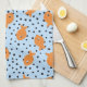 Bring a splash of playful charm into your kitchen with this delightful tea towel! Featuring a repeating pattern of sweet, orange goldfish swimming across a soft light-blue background, this design feels cheerful, fresh, and full of personality. Scattered black dots add a fun, whimsical touch that gives the whole piece a modern folk-art vibe.