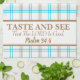 "Goûtez et voyez que l'Eternel est bon" est imprimé avec élégance sur cette serviette de cuisine élégante bleue et café, ajoutant une touche d'inspiration à vos tâches de cuisine quotidienne.