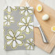 Fleurs marguerites blanches et jaunes modernes sur arrière - plan gris | Serviette de cuisine. Un moyen parfait d'égayer la cuisine avec cette belle serviette à motifs marguerriers. Parfait pour la maison de vacances d'été aussi! Visitez mon magasin pour d'autres décors avec ce design de Jenn's Emporium.