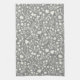 Une serviette turquoise peinte en gris et en ivoire, à motif botanique, parfaite pour un cadeau d'hôtesse.
