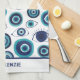 A coastal blue and white Greek evil eye patterned kitchen towel perfect for beach house home decor this summer. Personalize the text template and make this a unique housewarming gift for your loved ones. Please contact me if you need any help with customization.