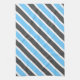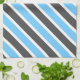 Cette serviette de cuisine dispose d'un beau motif rayé en diagonale bleu ciel, gris foncé et blanc.