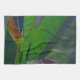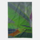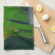Avec l'apparence d'un design de tissu tropical rétro, la photo originale de MaeFlowers sur cette serviette de cuisine est un closep de feuilles verts avec leurs détails linéaires et courbes gracieuses. Certains feuilles attrapent la lumière de manière à ajouter des teintes de rouille et de violet. L'arrière - plan de la photo est un flou de vert doux.