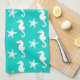 Linge De Cuisine Hippocampe et étoile de mer - blanc sur turquoise