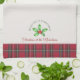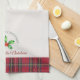 tartan rouge élégant, monogramme de noël rustique, serviette de cuisine customisée personnalisée, motif de chèque de nom personnel, de garde à à damiers, ajouter votre propre texte festif, nom de famille joyeux xmas, plat sophistiqué paraphé initial, classique berries traditionnelles d'hiver, Noël vert saint feuille