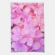Serviette de cuisine rose d'hortensias. La serviette de cuisine florale a les fleurs assez roses d'hortensias après la pluie.