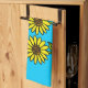 Cute, serviette de thé moderne avec trois tournesols. Vous pouvez même customiser l'arrière - plan à leur couleur préférée. Conçu par Thisisnotme©