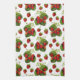 Serviette à thé en tirage dispersé de fraises et plantes de fraises adaptés à partir de dessins botaniques vintages - baies rouges profondes sur un arrière - plan blanc