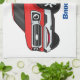 Pour les ventilateurs de camionnettes. Ce véhicule rouge heureux est dessiné dans un style amusant de dessin animé.