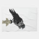 Un corbeau noir à jet trône au sommet d'une flèche de l'église Fleur-de-Lis. J'adorerais voir ce design dans la nature ; étiquetez-moi sur Instagram @parry_vegan