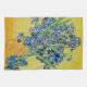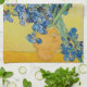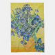 Irises (1890) Vincent van Gogh. Une belle vie positive encore. Grand vase jaune avec un bouquet d'iris bleus sur un arrière - plan jaune. Reproduction d'oeuvres d'art célèbres dans le domaine public.