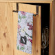 Cette serviette de cuisine fleurie en lavande de jardin pourpre présente un motif de jardin dessiné à la main avec des colibris, des fleurs exotiques et des champignons. Monogramme personnalisable dans un carré noir moderne pour un design propre et personnalisé.